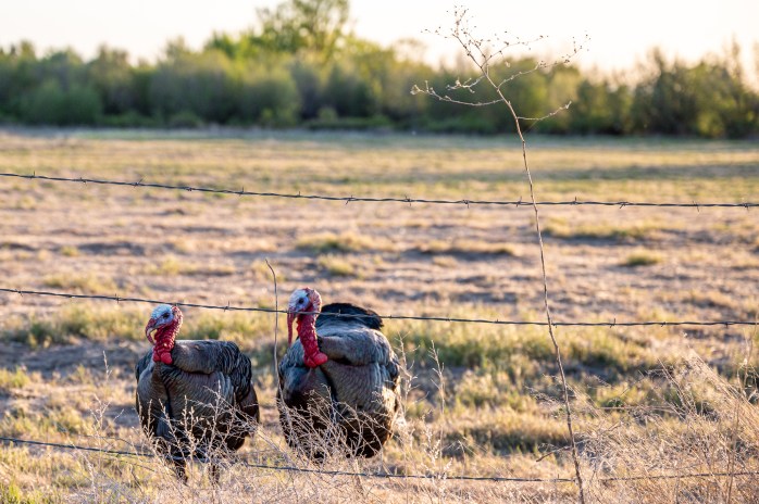 So… On the way back from photographing pigs, we ran into some turkeys. It was just about sunset when we spotted them. I jumped out of the Jeep, figuring that I’d get some photos of them as they ran away.